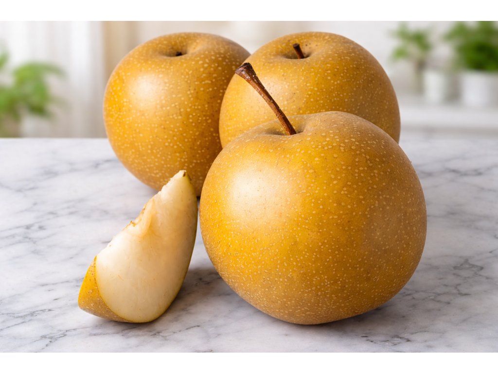 Muy jugosa, crujiente, dulce, con una acidez mínima – la típica textura de "manzana" del nashi.