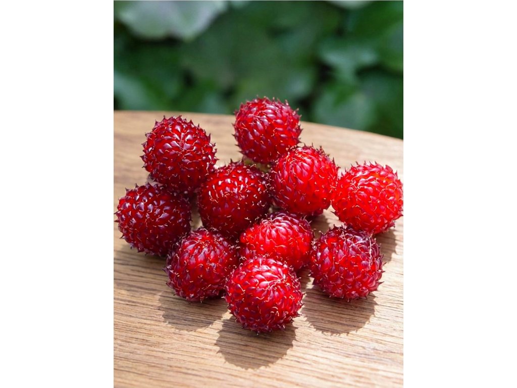 Los frutos son de tamaño medio a grande, de color rojo brillante. Su sabor es dulce, aromático. Cosechamos de Agosto a Octubre (dependiendo del tiempo).
