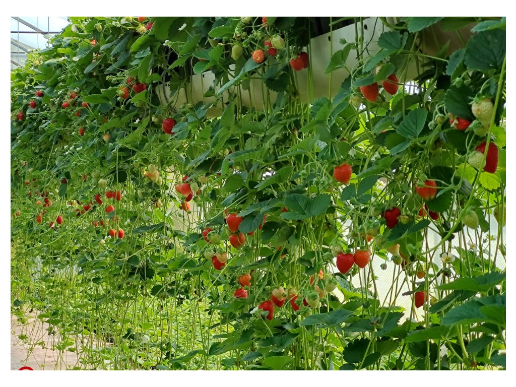 Fresas trepadoras Kaskade. Fresas tempranas que forman zarcillos muy largos, sobre los que también dan fruto.