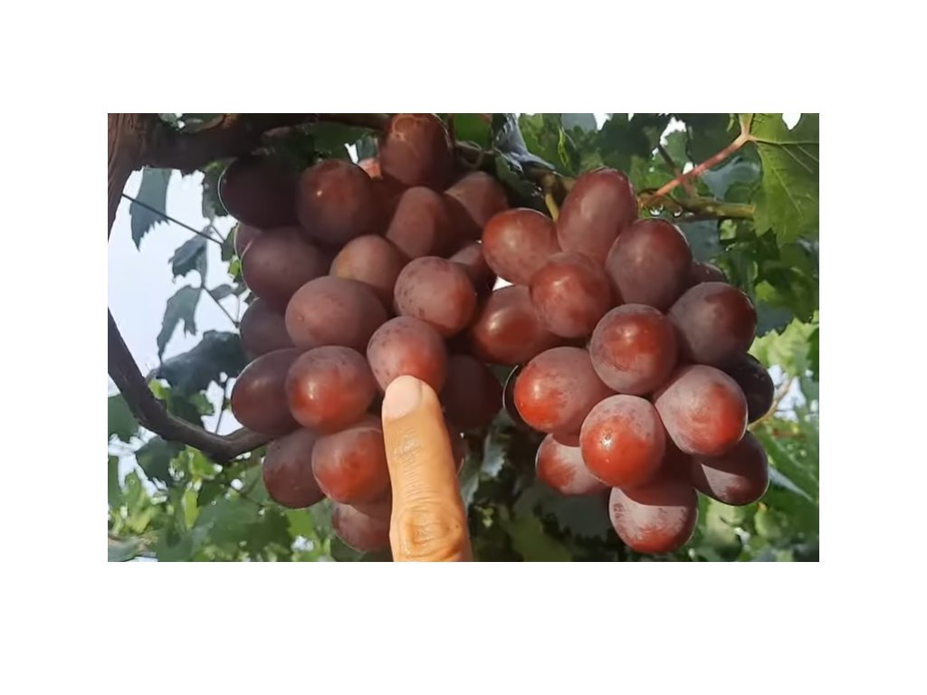 La flor es hermafrodita. La uva es grande casi muy grande, con un peso promedio de 720 g, cónica o cilíndrica, densa a densidad media. La baya es muy grande, ovalada, de color rojo violeta oscuro, cubierta con una densa capa de cera, con un peso promedio de 12,3 g. Algunos alcanzan hasta 30 g. La carne ( pulpa ) es carnosa, jugosa, la cáscara es densa. El sabor es armonioso. Arbustos de gran masa, buena maduración de la madera.